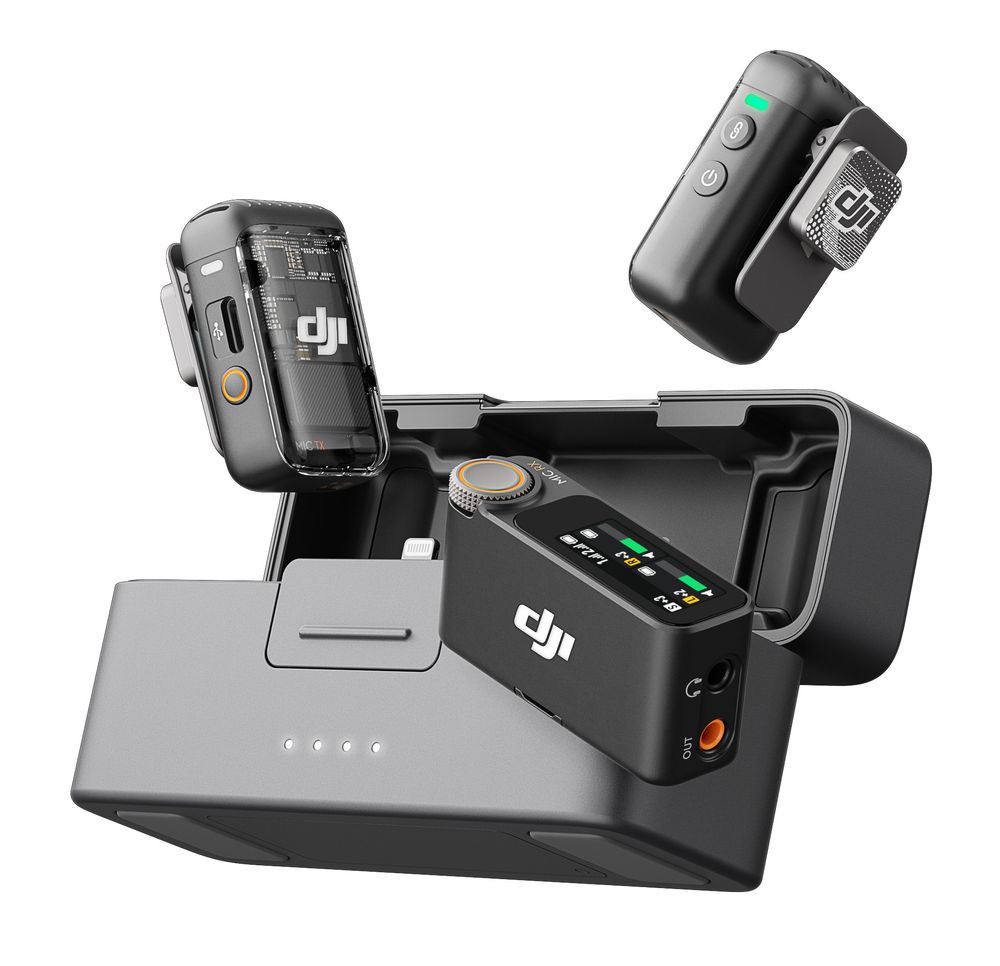 DJI Mic 2 automatically powers on as you open the charging case. This smart case automatically pairs the receiver and transmitters while charging them, so you can get started as soon as you open it up. It also contains both USB-C and Lightning adapters, providing hassle-free setup with your preferred recording devices.