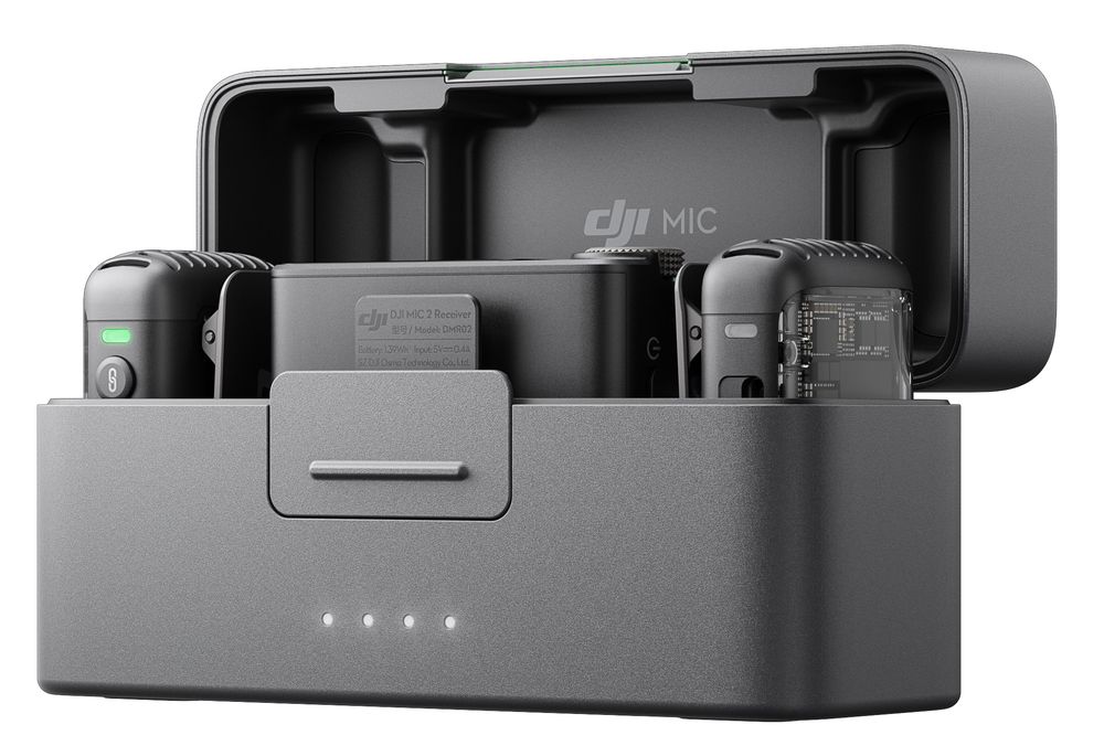 DJI Mic 2 features a sleek new design, elevating its aesthetics. A new charging case crafted from premium metal creates a minimalist appearance, and a newly added locking latch allows for effortless opening and closing.