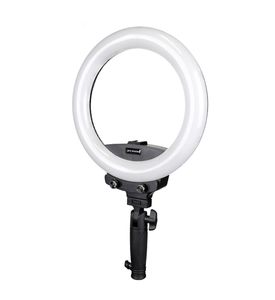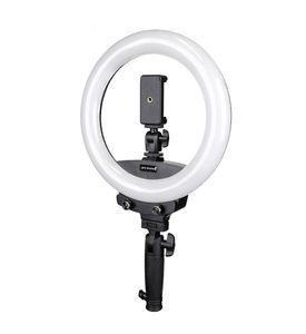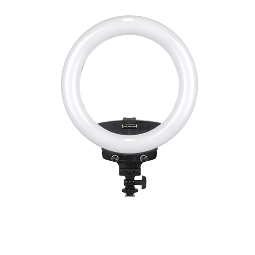 The ProMaster Mobile Bi-Color 10" LED Ringlight works with smartphones and cameras to create attractive, soft, even lighting for great videos and still photos. It includes an adjustable clamp and ball head to hold your smartphone or lightweight camera in its center. Or, you can mount it to the top of your camera using the included cold foot.