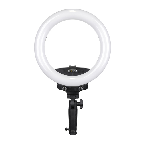A handle with integrated light stand mount is also included. Power-up the mobile ringlight with its AC cord or use the included, rechargeable Li-ion battery for wireless freedom. Best of all, this ringlight uses a bi-color design allowing you to control its color temperature (warmth and coolness of the light) with the turn of a dial.