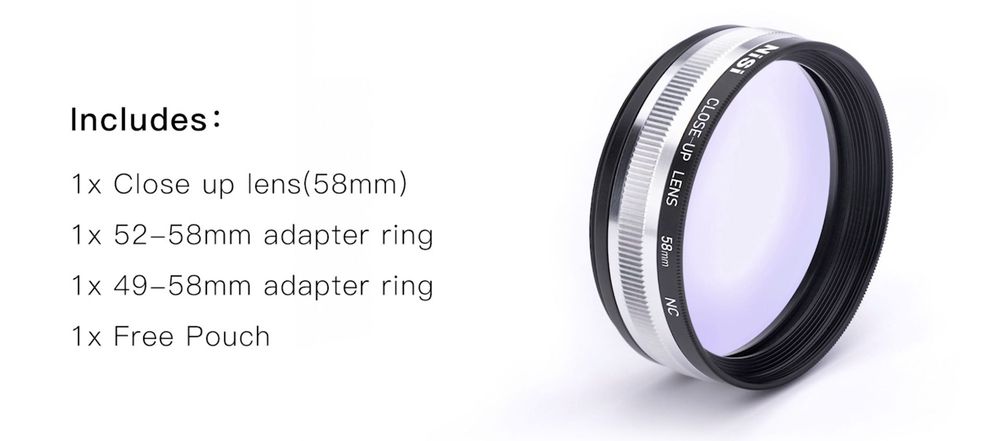 - Available for lenses with 58mm filter thread