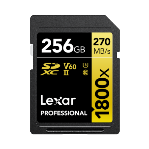 Lexar Professional 1800x SDXC™ UHS-II Card GOLD Series offers super-fast read speeds up to 270MB/s1 to accelerate your post-production workflow - saving you time and getting you back to the business of photography
